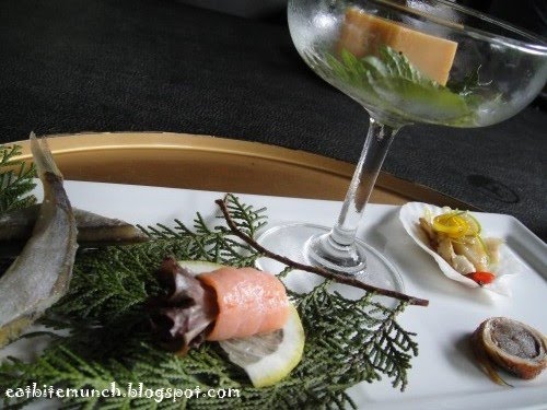 The appetiser came with a variety of finger foods, so to speak. Urchin tofu, scallops, smoked salmon and shishamo were all part of this dish.